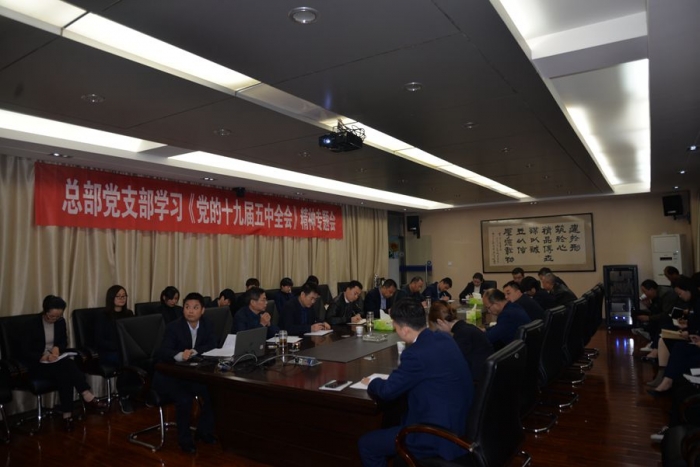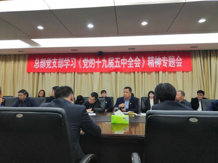 2020年11月10日晚,公司總部黨支部組織召開學(xué)習(xí)貫徹《黨的十九屆五中全會》精神專題會。公司董事長、黨委書記胥立、班子成員及各部門相關(guān)黨員干部共計30余人參會,會議由總部黨支部書記沈?yàn)槊裰鞒帧?/span>