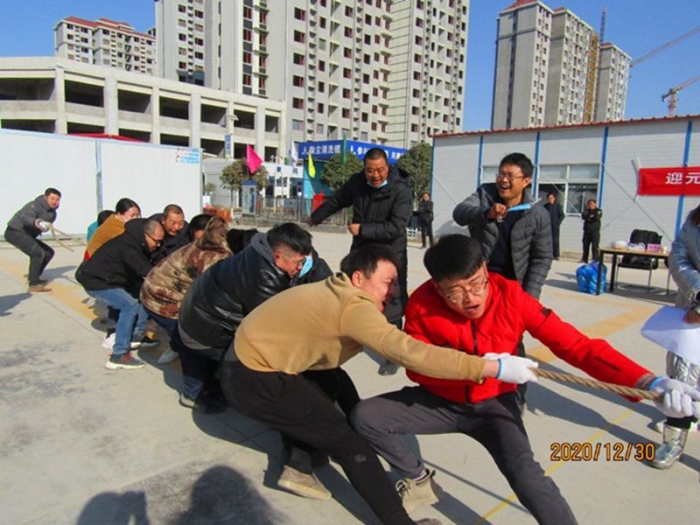 2020年12月31日,秦漢和苑項目部聯(lián)合西安國采、陸港·金海岸兩個兄弟項目在秦漢和苑項目生活區(qū)內開展了“迎新年·慶元旦”文體活動。70余名項目部員工參加。