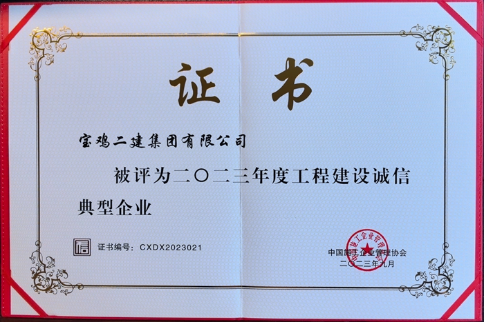 2023年度工程建設(shè)誠(chéng)信典型企業(yè)