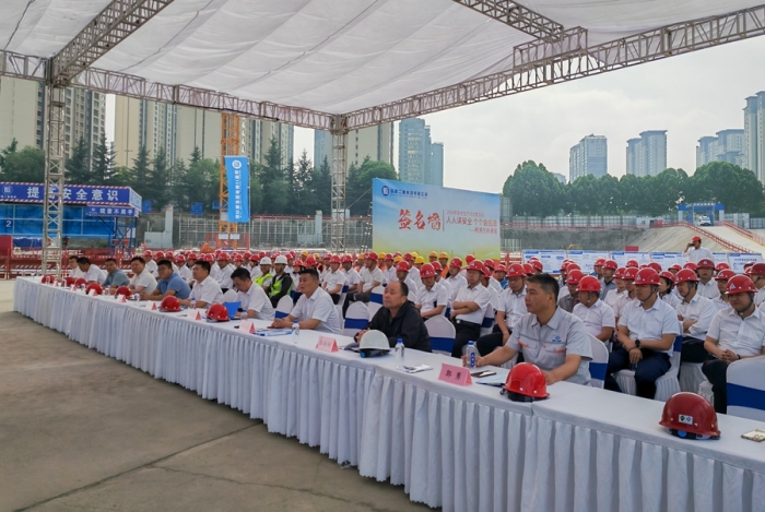 集團公司黨委副書記、總經(jīng)理楊江平,副總經(jīng)理、總會計師嚴海軍,副總經(jīng)理申小龍出席儀式。集團公司總部相關(guān)部門,寶雞片區(qū)各項目部負責(zé)人、專職安全管理人員及現(xiàn)場施工人員共計150余人參加了本次活動,儀式由副總工程師、工程管理部經(jīng)理郭為群主持。